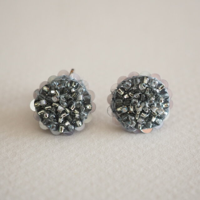 round粒々プチフリル(グレー)ピアス/イヤリング【受注】
