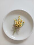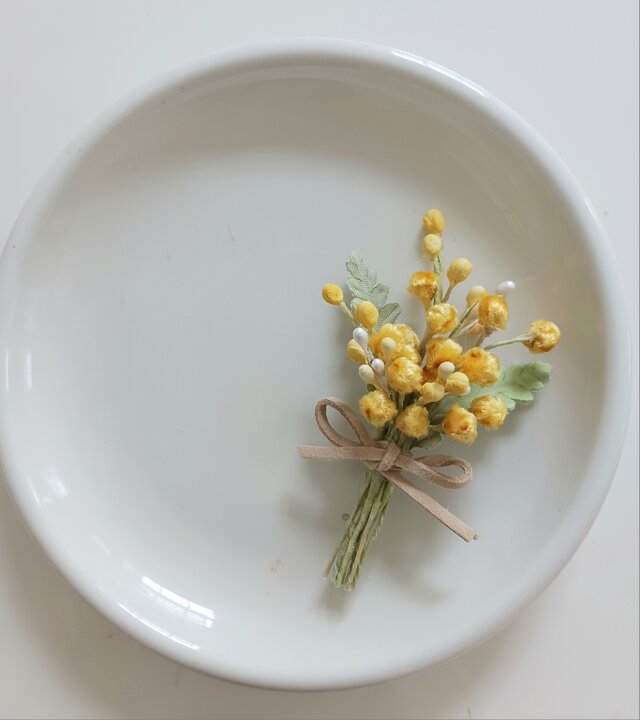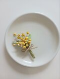 小さめのミモザのコサージュも出品しています。お子様用にご使用頂けます。