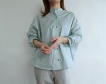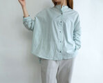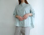 ダブルフェーススタンドカラーブラウス<ミストグリーン>