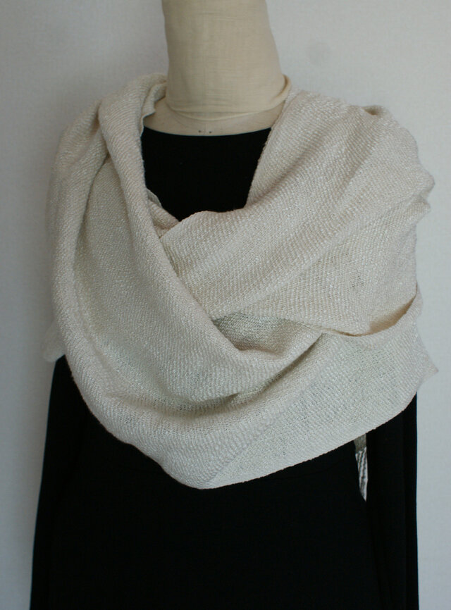 手紡ぎのマフラー(白色・ハックアバック)母へのプレゼントとして購入しましたが、素敵な手紡ぎのマフラーでとても喜んでくれました。発送も素早く丁寧に対応していただきありがとうございました。