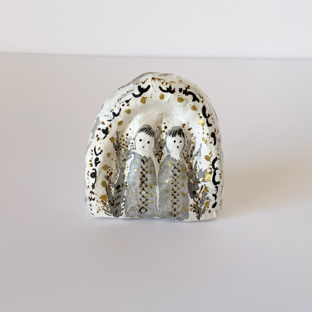 乾燥すると強靭になる紙の性質を活かし、石膏や陶器にも見える仕上がりです。