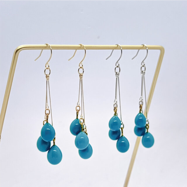 手づくりガラスの【雨だれピアス】ターコイズブルー ★金具変更OK ドロップ 雫 しずく ★送料無料