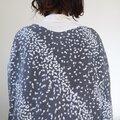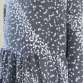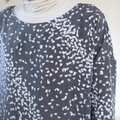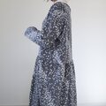 アンティークの小紋の着物から作ったワンピースです。薄手で柔らかですがしっかりとした素材でつるっとした手触りです。黒の鮫小紋の上にグレーとホワイトの桜吹雪が舞っています。