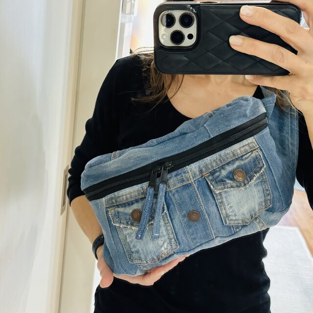 ハンドメイド★デニムリメイク★ボディバッグ ボディーバッグ★トートバッグ マザーズバッグ パッチワーク ウエストポーチ