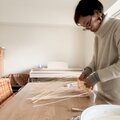 ラタンを編んだ後に、コーヒーで2度染めて色を付けています。半日〜1日ほど完全に乾かしてから、保護のために塗装をしています。