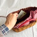 ラタンとチェック柄の布の組み合わせがとても可愛くて、ちょっとしたお買い物やお出かけに大活躍しそうです。 軽くて、使いやすそうで大満足でした。