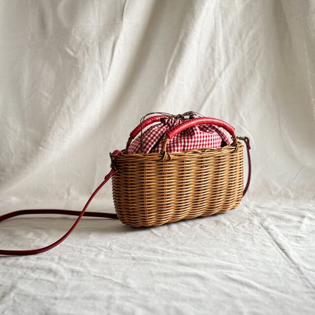 ラタン(籐)で編んだカゴポシェットです。