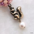 愛嬌のある表情のリスチャームのテールに下げたのはコットンパール。