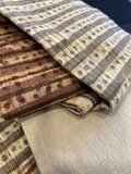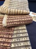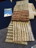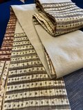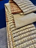素朴な布と木綿の無地を縫い合わせて半幅帯を作りました。