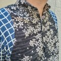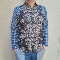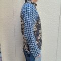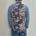 新作手作り長袖和柄ジャガード二重織シャツ(桜×格子)