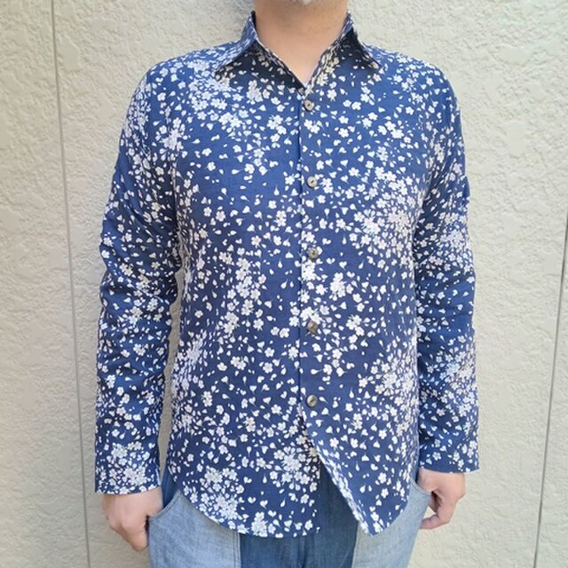 長袖和柄シャツ(桜吹雪)