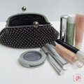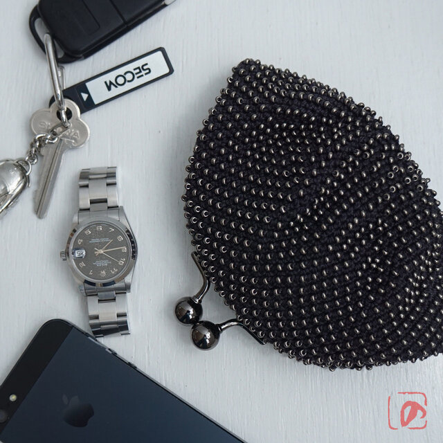 一目飛ばしにビーズを編み込んだ、つぶつぶ感がカワイイがま口。