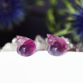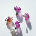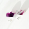 フローライトの彫刻による、猫の彫刻ピアスです。