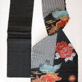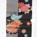 名古屋帯 アンティーク 唐獅子 牡丹 黒 昭和レトロ|ジャパンヴィンテージ