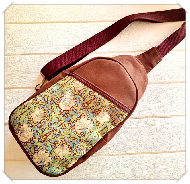 ウィリアム・モリス「ピンパーネル」の生地と11号帆布で製作しました。