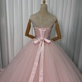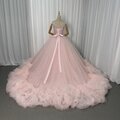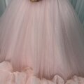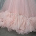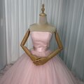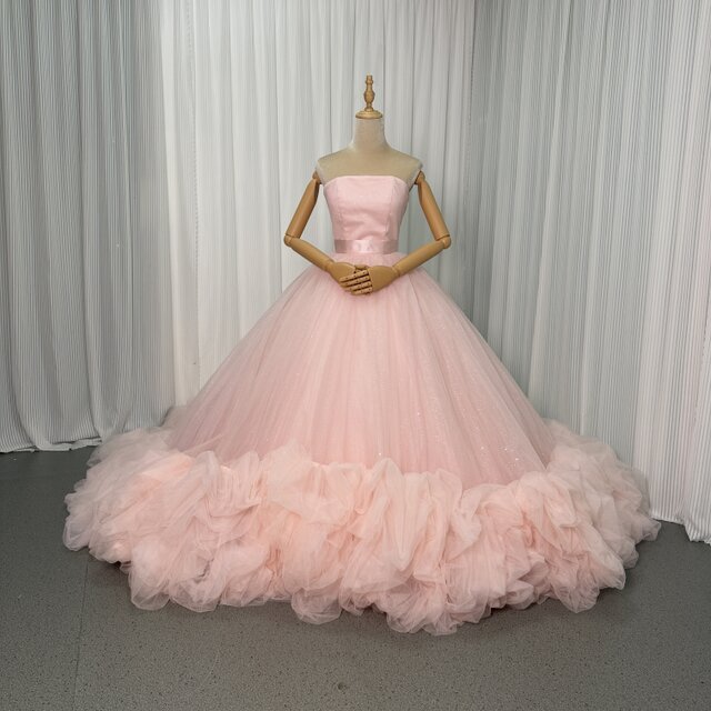 美品!カラードレス 薄ピンク ベアトップ 華やかなトレーン プリンセスライン キラキラチュール 前撮り