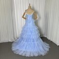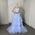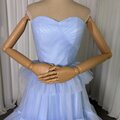 カラードレス ブルー ベアトップ チュールスカート スレンダーライン 編み上げ 演奏会/音楽会