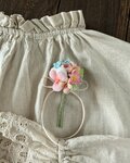 ・染め花は花びらのカット、染め、こてあて、成形、すべて手作業によるものです。多少の色むらやレース・リボンのほつれなどご理解の上、お買い上げくださいませ。また、雨や雪などによる色落ちには十分ご注意ください。