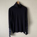 カラ-紺袖切り替え部分二重織水玉 綿100%
