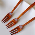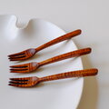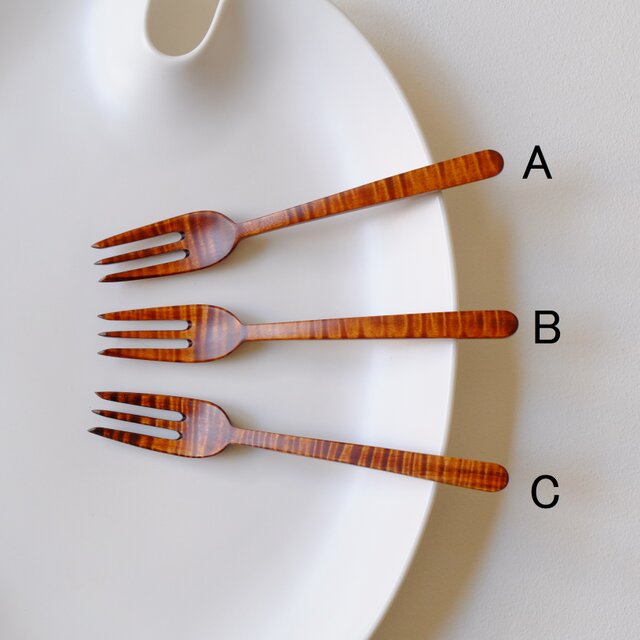 栃材縮杢のデザートフォーク〈type B〉(拭き漆)2602