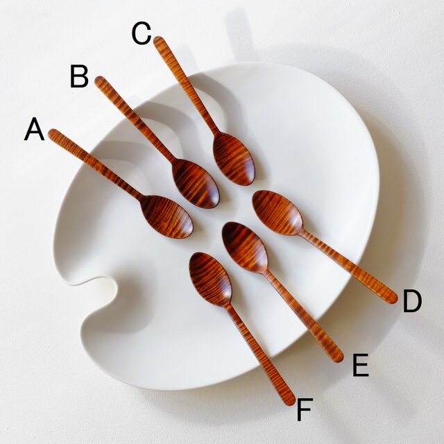 栃材縮杢のデザートスプーン〈type B〉(拭き漆)2602