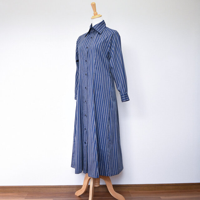 【完全一点物】マーメイドフレアワンピース(ネイビーストライプ)
