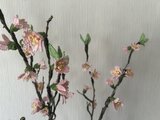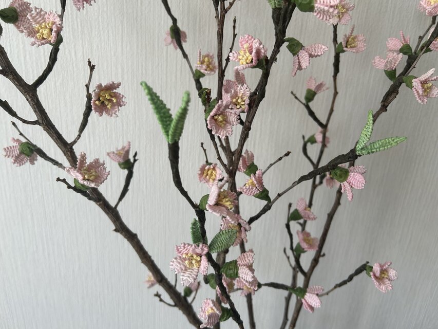 1mmの籐で桜を編んで、桜の枝につけてみました。