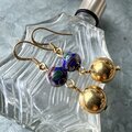 クロワゾネビーズがオリエンタルなムードを漂わせる、ゴールドトーンハンギングピアス。