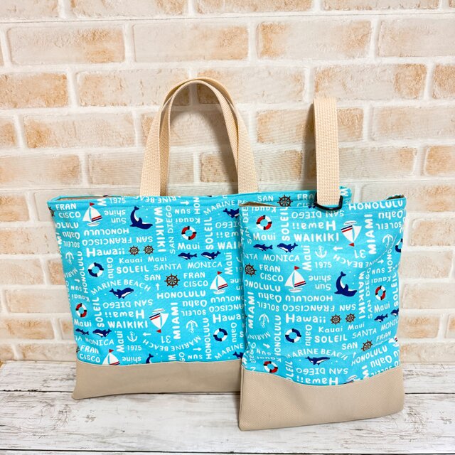 レッスンバッグ&シューズケース 2点セット 【イルカ×ヨット】