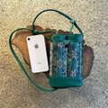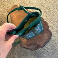 グリーンの牛革と着物生地のパッチワーク、さらに刺し子を施してあります。