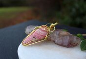 とても綺麗で存在感のある素敵な作品をありがとうございました。ワイヤーに飾られたチューライトやロードナイト、アンデシン、ガーネットのビーズもアンフィボールちゃんと良くあっていてすごく可愛いです♪ アンフィボールの石さんは、初めて見たのですが内包物もとても綺麗で色々な世界が広がっていて、ずっと見ていれます。この度も素敵な作品をありがとうございました。 大切につけさせて頂きます!