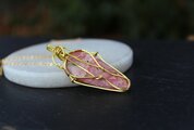 この石の華やかさを生かしてゴールドのワイヤーで華やかに巻きました。