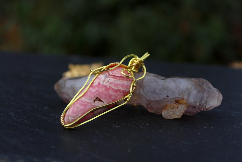 アルゼンチンが主な産地の為に「インカ・ローズ」とも呼ばれています。古くからインカ人によって、「ピンク色のバラ模様を呈した真珠」として大切に扱われてきたそうです。この美しいピンク、または赤いバラのような色彩から「バラ色の人生」を象徴する石として絶大な人気を誇っています。また、石をカットし研磨するとバラの花を思わせるような美しい模様が現れることから、「インカの薔薇」と呼ばれるようになったという説もあります。純粋なロードクロサイトはピンクですが、鉄分を多く含むと赤みが強くなります。この赤みが強いほど良質であるとされています。