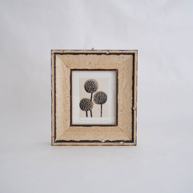 版画ゆうびんno.26 "billy buttons"を小さな額縁に入れました。