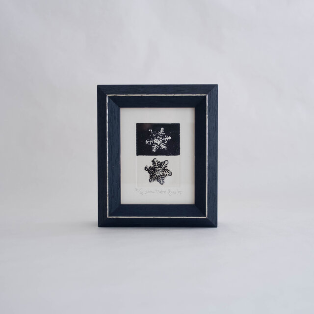 版画ゆうびんno.31 "snowflake"を小さな額縁に入れました。