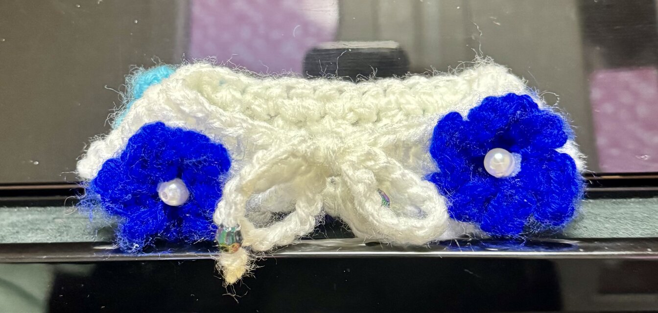 うさぎさんケープに大きめな可愛いお花をあしらってみました