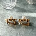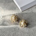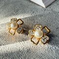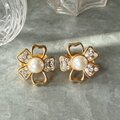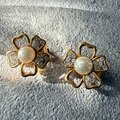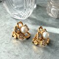Y1224-ヴィンテージイヤリング Floral Gold Tone Faux Pearl Rhinestones