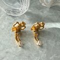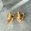 ぷっくりとしたフェイクパールの立体感あるフォルムと、ゴールドトーンのオープンになった2枚の花びらのデザインが上品でありながら、モードな印象も感じさせます。