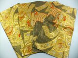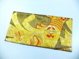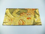 ■新品の帯をリメイクしました。高級帯「佐賀錦」です。束ね熨斗、向かい鶴のおめでたい文様です。金糸が美しく高級感のある帯地です。