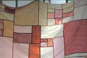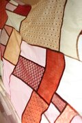 主にコットンとリネンのはぎれを組み合わせています。刺繍の入った布を多用しました。