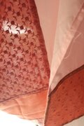 ピンクのグラデーションの全体の半分ほどが、植物染色布。茜染、すおう染め、茶葉染めとなります。