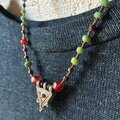 ポイントの赤いビーズ2種はボヘミアの古いビーズです。