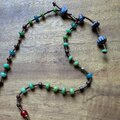 チェーンはフランスのデッドストックビーズに貿易風のビーズとミャンマーのチョコ色の古いビーズを繋いでみました。