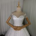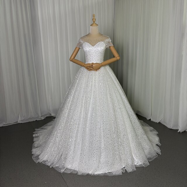 韓国風ドレス ウェディングドレス ラウンドネック 短袖 シークインチュール 華やか 編み上げ 拳式/前撮り