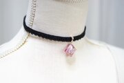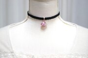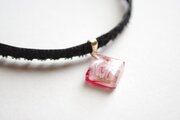 【受注製作】レジンアート スクエアモチーフとタティングレースとベルベットリボンのチョーカー〈真朱の音色〉