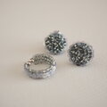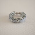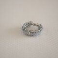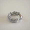 グレーのビーズに、3㎜のグレーのスパンコールを編み付け、スパンコールと同系色の小さなビーズで縁取ったシンプルな細めのイヤーカフです。