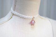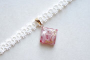 【受注製作】レジンアート スクエアモチーフとタティングレースとサテンリボンのチョーカー〈真朱の音色〉