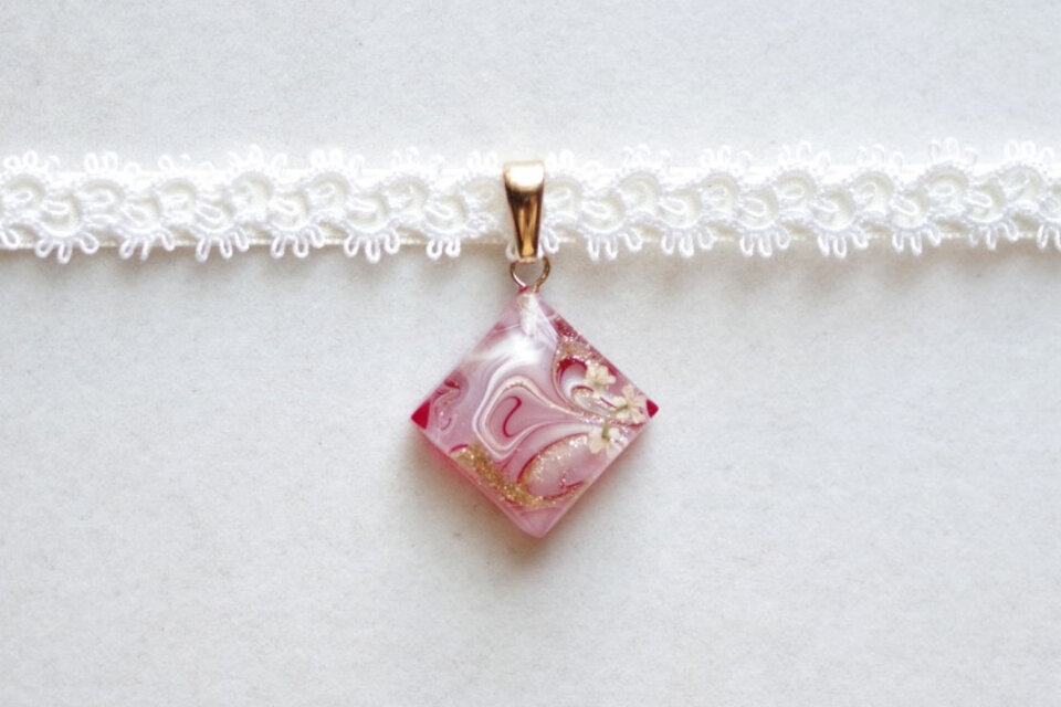 レジンでスクエアモチーフのチョーカーを作りました♪