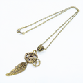 アンティークゴールド 翼と歯車を組合せたスチームパンク風ネックレス オープンハート 長さ調整可 アジャスター追加可