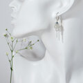 動くたびにやさしく揺れ、グレームーンストーンの静かな艶と透明感を引き立てます。